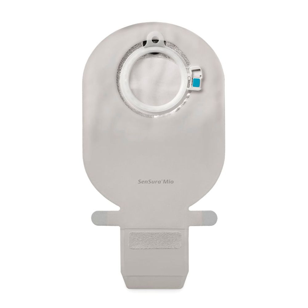 SenSura® Mio Bolsa coletora drenável sistema de 2 peças confortável de aparência discreta e natural com sistema de acople audível por um click com botão de travamento sinalizado na cor turqueza e aro de ajuste que permite o reposicionamento da bolsa no abdômen em formato ondulado, conferindo maior flexibilidade e segurança. Apresenta janela de inspeção, filtro exclusivo circular completo e fechamento em envelope com velcro sinalizado na cor turquesa.
