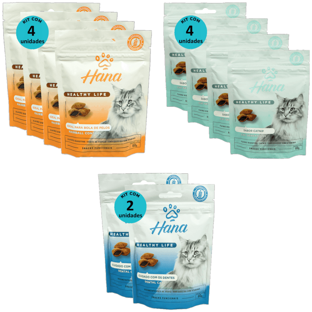 2 SNACKS HANA LIFE DENTAL CARE + 4 HAIRBALL CONTROL + 4 CAT SENSATIONS
