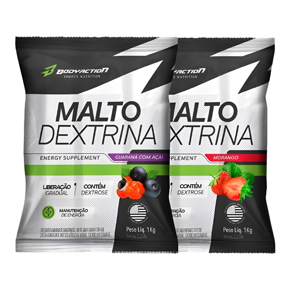 2x Maltodextrina Malto Dextrin 1kg - Bodyaction Sabor Guaraná Com Açaí/morango Silvestre