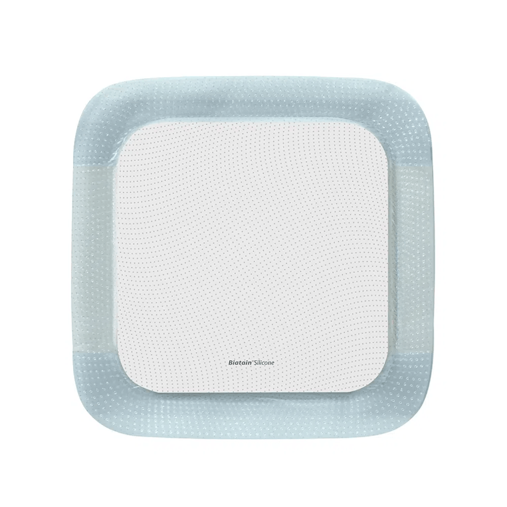 Curativo Espuma e Silicone 17,5x17,5cm BIATAIN SILICONE Coloplast 33438 que promove absorção superior e um ambiente úmido ideal para cicatrização mais rápida da ferida. Ferida crônica e agudas; Não infectadas; De média a alta exsudação como: Úlceras por pressão; Úlcera venosa; Úlcera diabética; Queimaduras; Prevenção em áreas de pele em risco de desenvolvimento de úlcera por pressão; Proteção da pele.