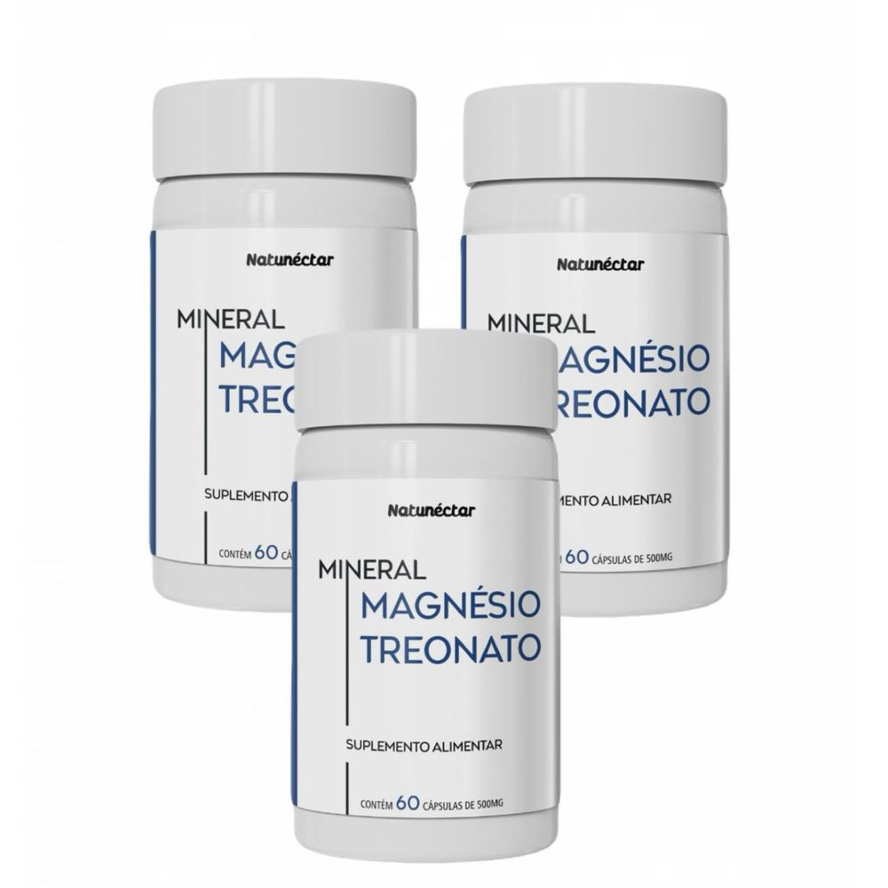 3x Magnésio Treonato Puro 60 Cápsulas 500mg