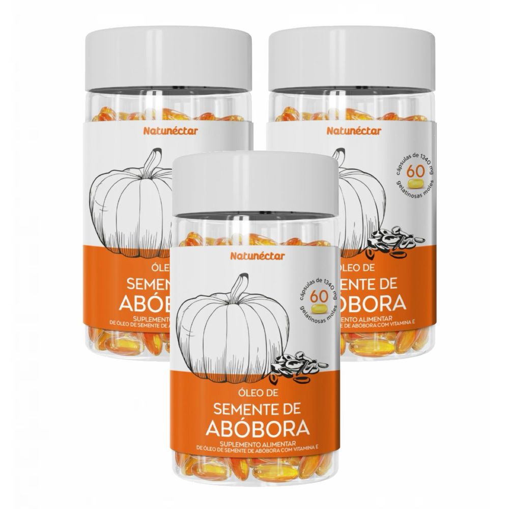 3x Óleo Semente De Abóbora 1000mg- Vitamina E- 60 Cápsulas sem sabor