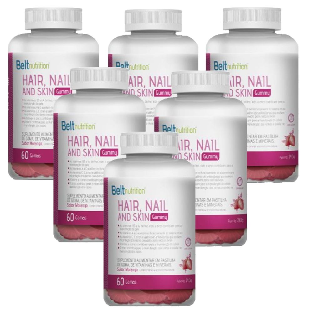 6x Belt Hair, Nail And Skin Gummy-Morango-60 gomas
