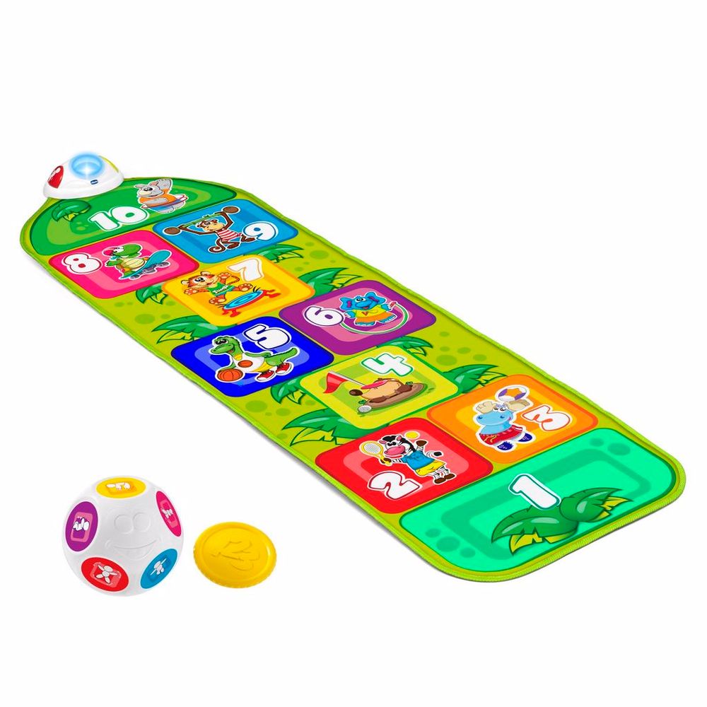 O tapete eletrônico ajuda seu filho a desenvolver suas habilidades motoras e precisão com alegria! A criança pode pular ouvindo os sons engraçados de cada caixa e se divertir com os dois modos de jogos divertidos que podem ser adaptados à idade e às habilidades da criança. Seja no modo convencional da amarelinha ou nas atividades do dado, a diversão está garantida.