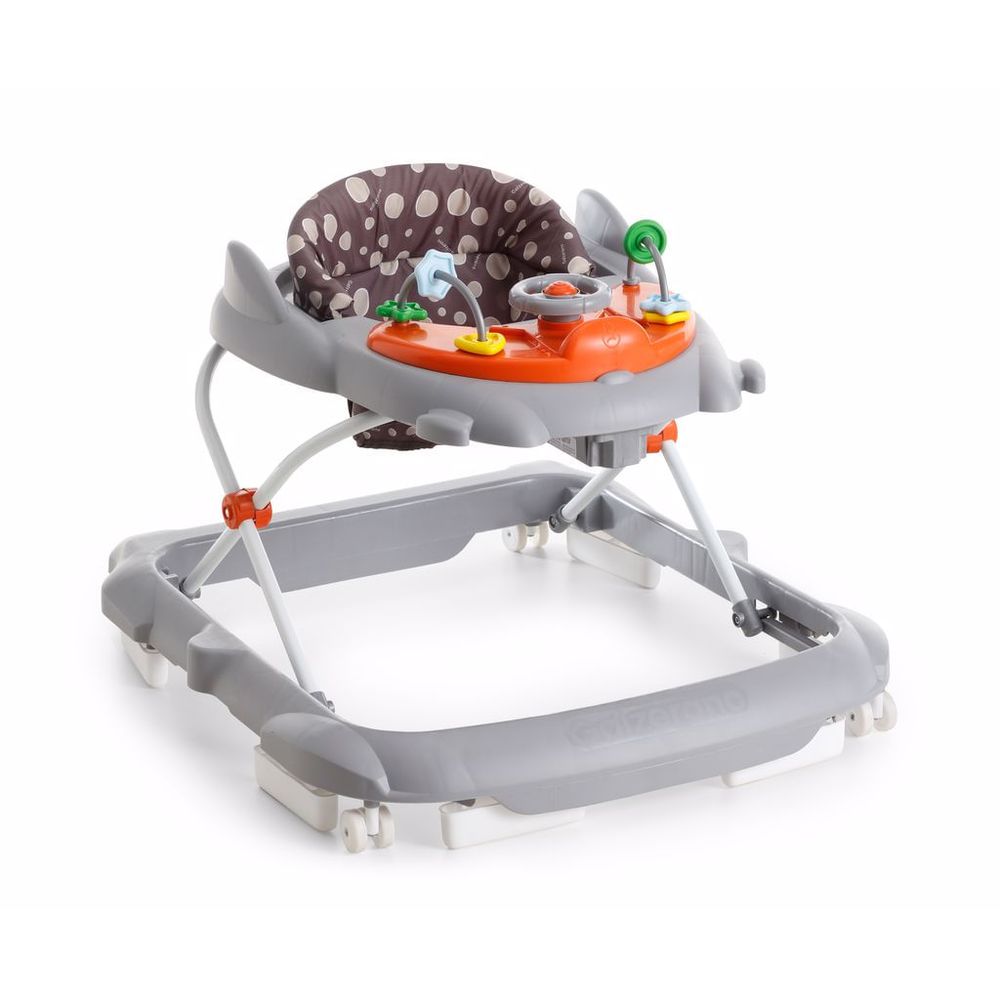 Para o divertimento da criança, o andador acompanha bandeja brinquedo. Sua composição têxtil é 100% poliéster.