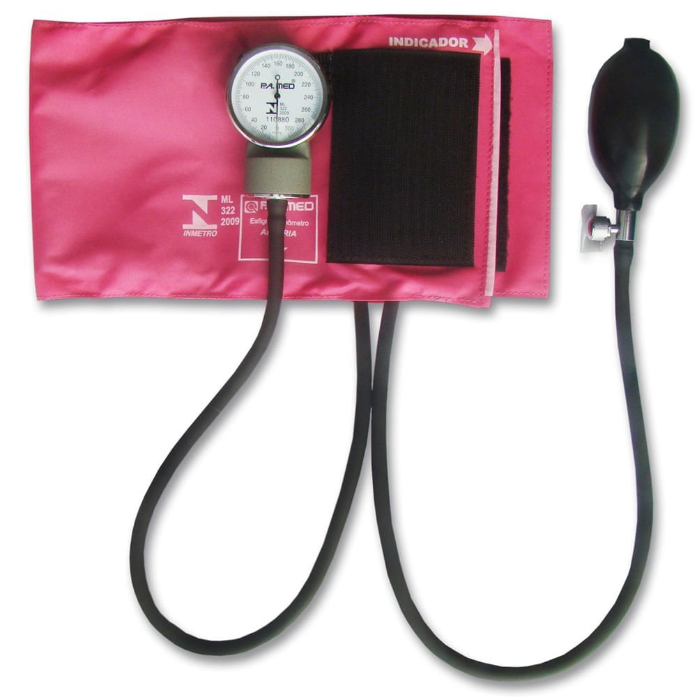 O Aparelho de Pressão P.A. Med Adulto possui braçadeira em nylon antialérgico com fechamento em velcro. Seu manômetro é de metal cromado e possui entrada e saída de ar regulada por válvula de inox de alta durabilidade, o que garante uma medição muito mais precisa. O manômetro do aparelho é aneroide tem faixa de medição de 0 mmHg a 300 mmHg. Estojo de proteção incluído. Cuidados com o produto - Lavar somente a braçadeira com água e sabão neutro e secar ao ar livre; - Limpe com o manômetro um pano macio e levemente umedecido com água; - Este esfigmomanômetro não deve ser esterilizado pelo processo de autoclave; - Não inflar o manguito acima de 300 mmHg, isto poderá danificar o aparelho e perder a garantia; 02 Anos de Garantia contra defeitos de fabricação. A braçadeira do esfigmomanômetro possui 01 ano de garantia.