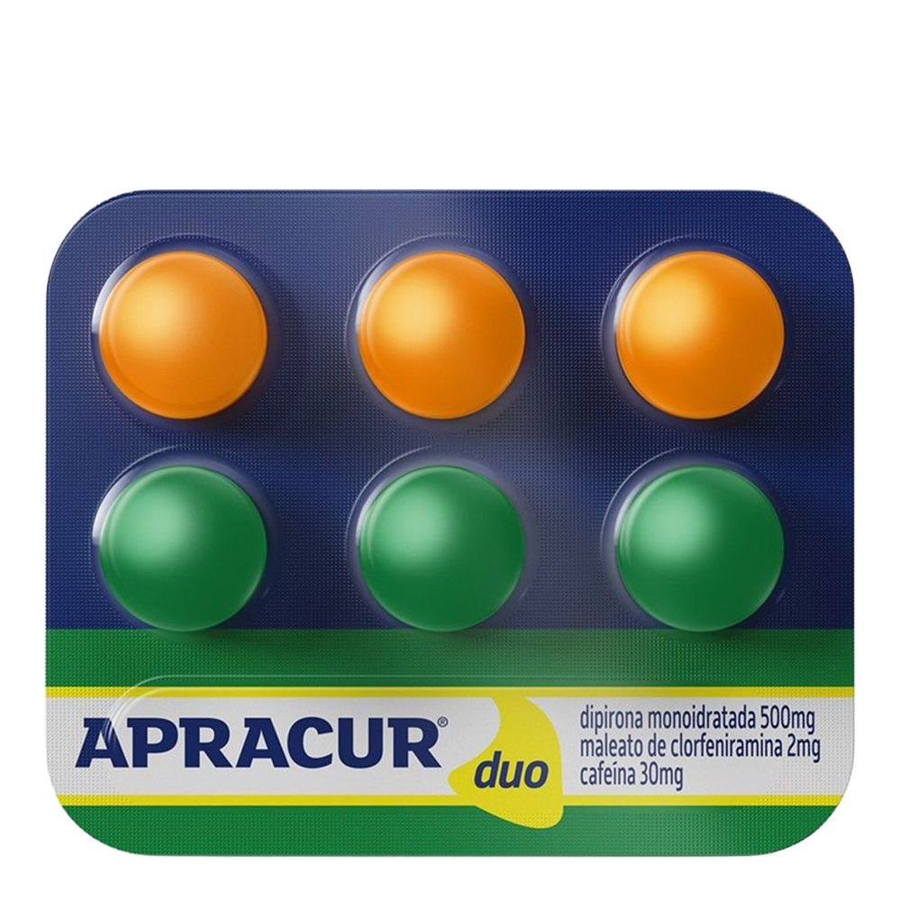 Antigripal, Analgésico e Antialérgico Apracur Duo 500mg + 2mg + 30mg 6 Comprimidos Revestidos