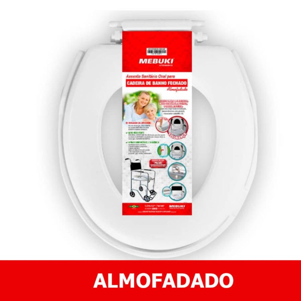 Assento Sanitário Almofadado Para Cadeira de Banho Fechado Mebuki Único