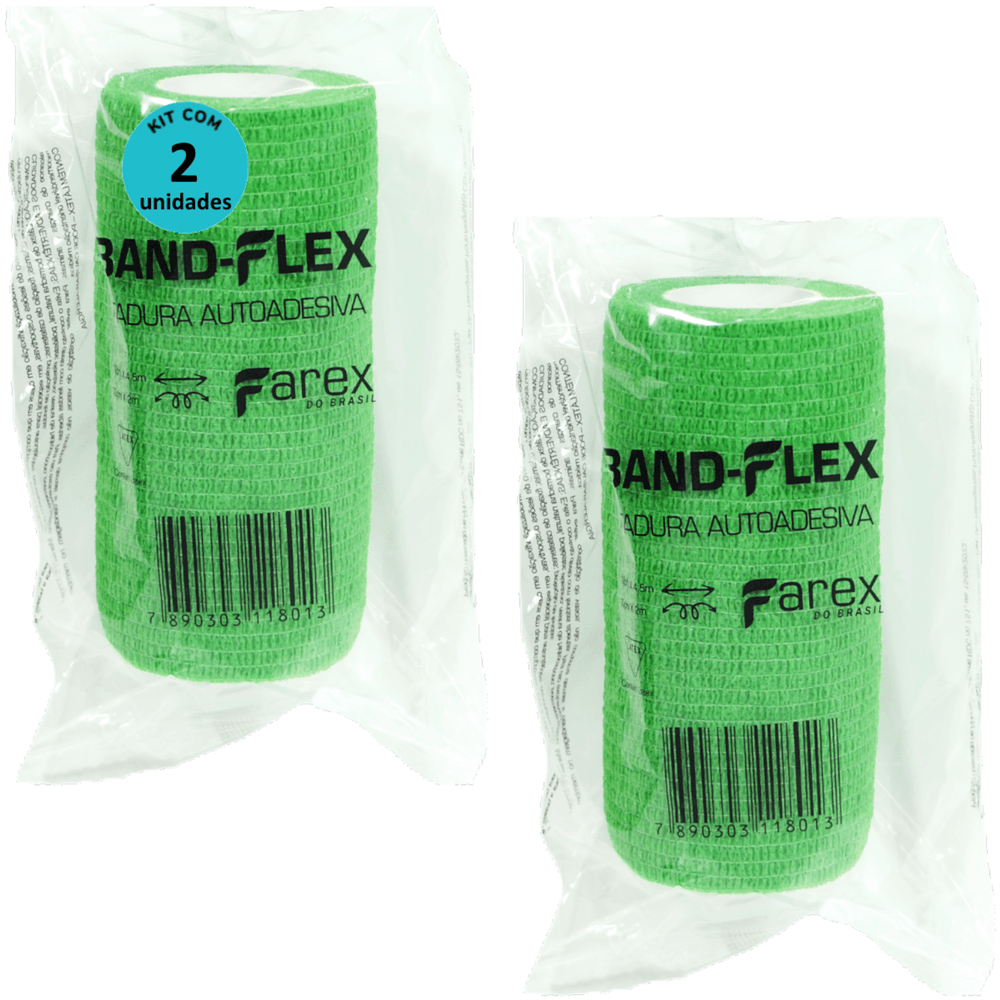 Atadura 10cm Verde Band-Flex Autoadesiva Para Animais Farex Kit Com 2