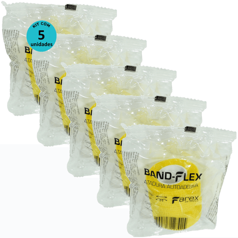Atadura 5cm Amarela Band-Flex Autoadesiva Para Animais Farex Kit Com 5