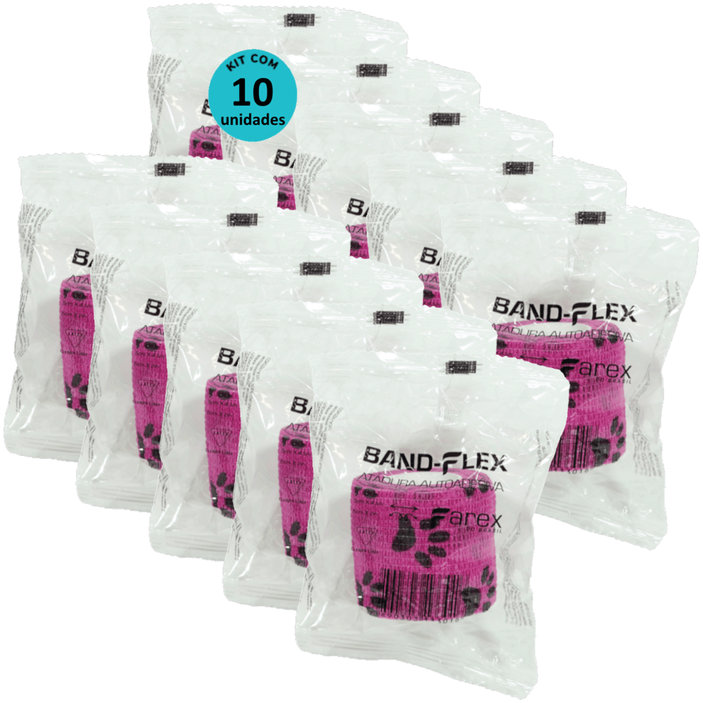 Atadura 5cm Rosa Com Patinhas Band-Flex Autoadesiva Para Animais Farex Kit Com 10