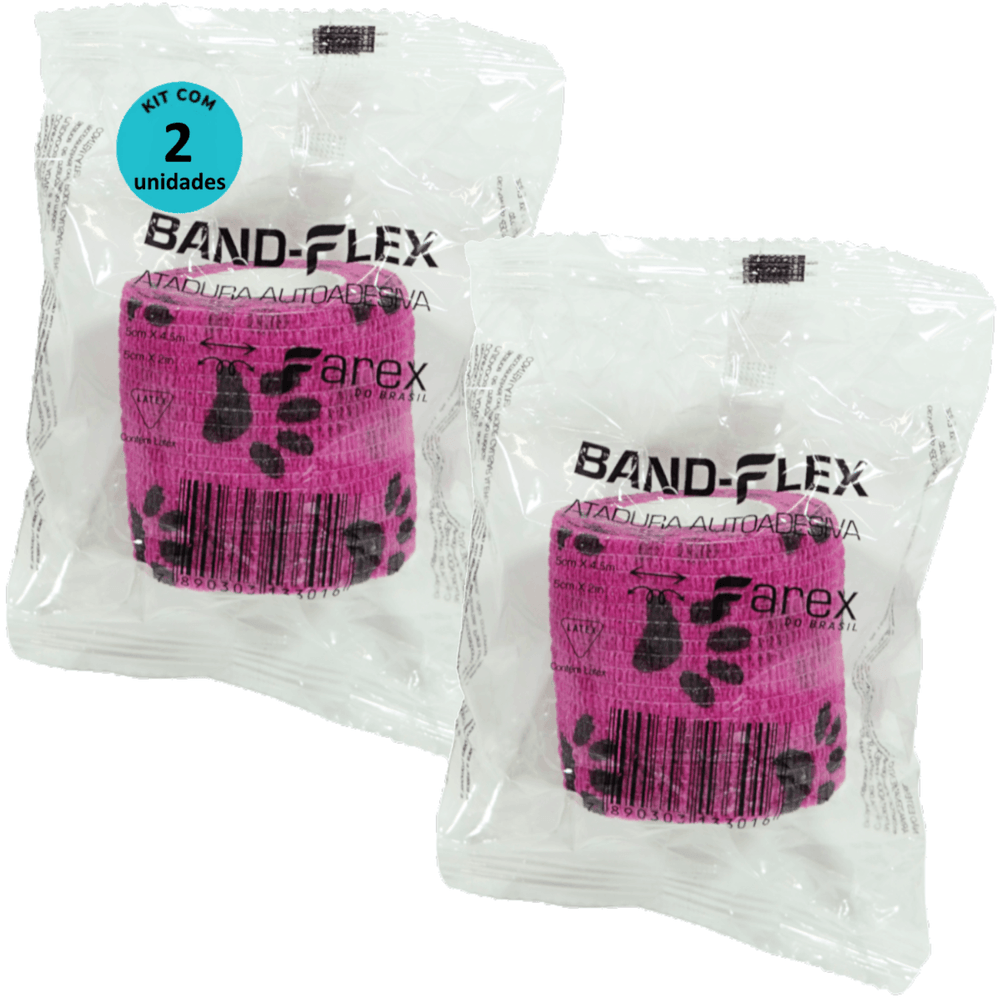 Atadura 5cm Rosa Com Patinhas Band-Flex Autoadesiva Para Animais Farex Kit Com 2
