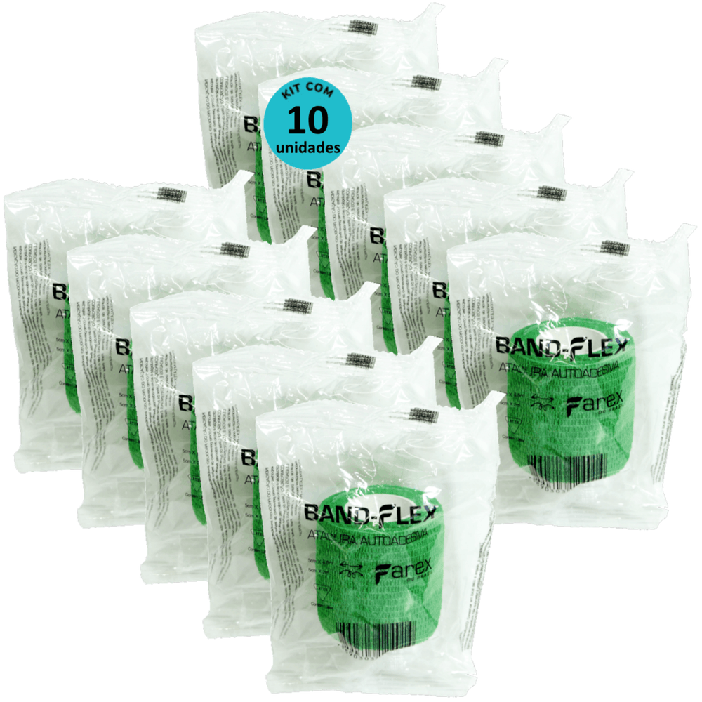 Atadura 5cm Verde Band-Flex Autoadesiva Para Animais Farex Kit com 10
