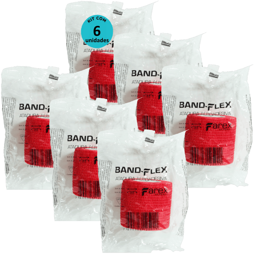 Atadura 5cm Vermelha Band-Flex Autoadesiva Para Animais Farex Kit Com 6