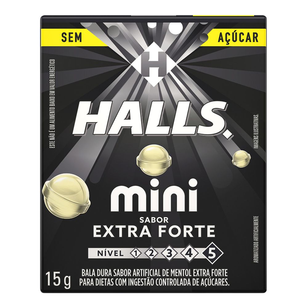Bala Halls Mini Sem Açúcar Extra Forte 15g