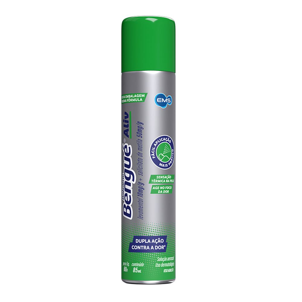 Bálsamo Bengué 60gr EMS Aerosol é um medicamento de uso tópico indicado para alívio das dores decorrentes de reumatismo, nevralgias, torcicolo, contusões e dores musculares. Não deve ser aplicado em áreas como olhos, nariz e genitais. Uso adulto. Leia a bula antes de usar.