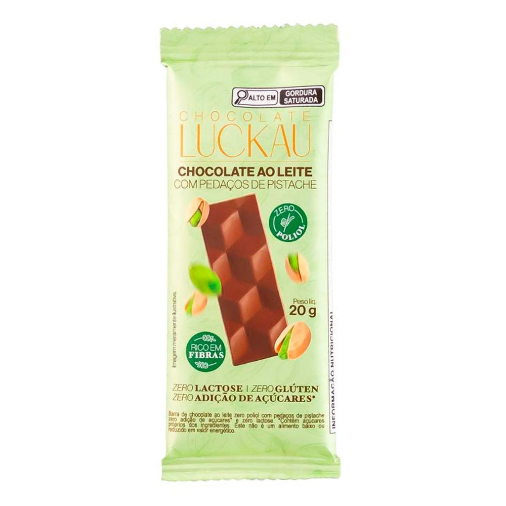 Barra de Chocolate Luckau ao Leite com Pedaços de Pistache 20g