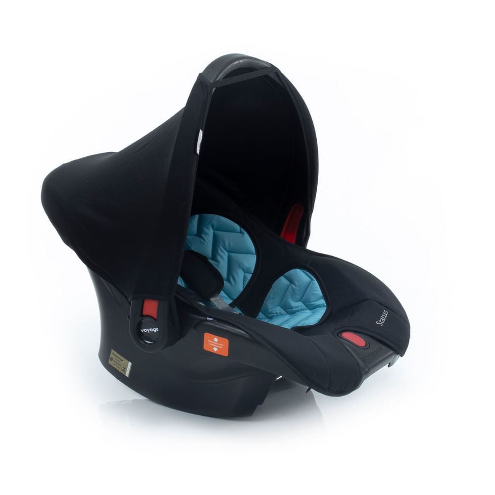 Cinto de segurança de 3 pontos com protetores de ombros acolchoados, 3 posições de altura e ajuste centralizado com botão frontal. Apoio de cabeça e almofada redutora reposicionáveis, removíveis e com função dupla face que permite variar o visual do produto.