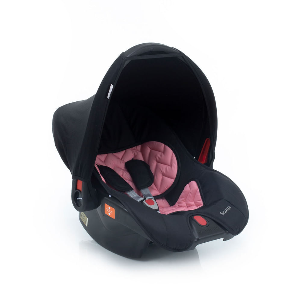 Cinto de segurança de 3 pontos com protetores de ombros acolchoados, 3 posições de altura e ajuste centralizado com botão frontal. Apoio de cabeça e almofada redutora reposicionáveis, removíveis e com função dupla face que permite variar o visual do produto.