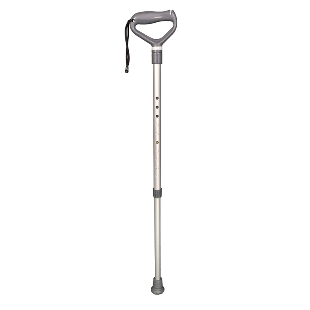 A Bengala Fixa com Apoio foi desenvolvida para auxiliar pessoas com mobilidade reduzida, proporcionando apoio e estabilidade para prevenir quedas durante a caminhada. O recurso é resistente, leve e possui apoio de mão com cantos arredondados e design ergonômico, que contribui para melhor distribuição da pressão palmar, além de apoio extra, que auxilia o usuário a erguer-se com as duas mãos. O dispositivo conta com 10 níveis de ajuste de altura, alça para punho e suporte para apoiar pequenos objetos. A bengala contém ponteira flexível com ranhuras que reduzem o risco de deslize em pisos com acúmulo de líquido e sinalizador de desgaste, o que oferece uma passada mais natural e segura ao caminhar. Tamanho único ajustável Produto compatível com usuários que tenham altura de 1,50m a 2m Resistência de 100 kg Medidas do produto Altura mínima: 74 cm Altura máxima: 97 cm