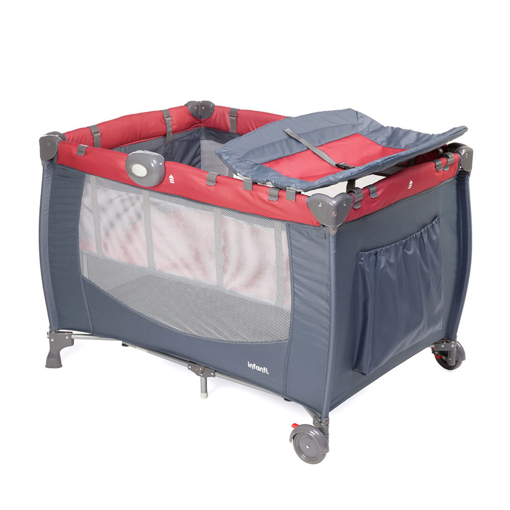 alça e mosquiteiro. Inclui plataforma com trocador e bolso porta objetos lateral.