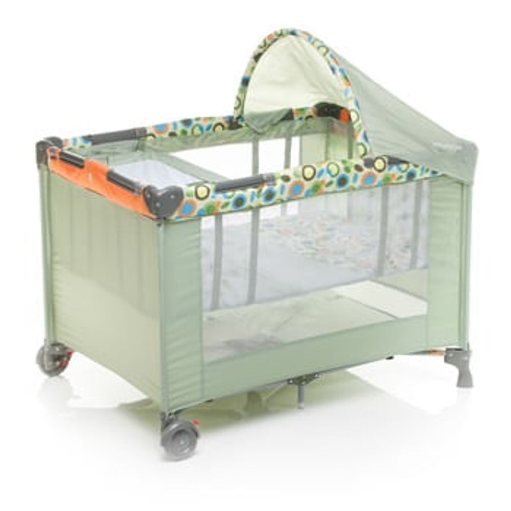 Colchonete macio e impermeável com 2 posições de altura. Leve, compacto e confortável para o bebê, inclui rodas com freio, amplo bolso porta-objetos, laterais com tela e bolsa de transporte com alça excelente para viagens.