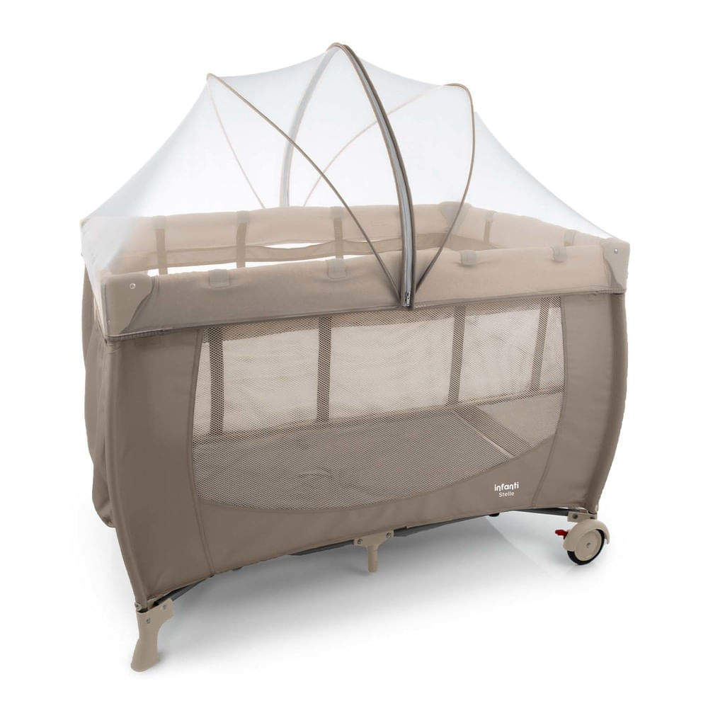 Stelle é o berço portátil da Infanti completo: possui duas opções de altura para as diferentes fases do bebê. Acompanha mosquiteiro arcado com zíper para abertura que facilita o acesso, protegendo os bebês com mais conforto, trocador com cinto de segurança para trazer praticidade também na hora da troca de fraldas ou de roupa. Além do bolso porta-objetos na lateral para deixar o que precisar sempre a mão. Com colchonete macio e fácil de limpar, mais seguro, com zíper e trava para não ter deslocamentos e espaços entre a estrutura e as laterais.