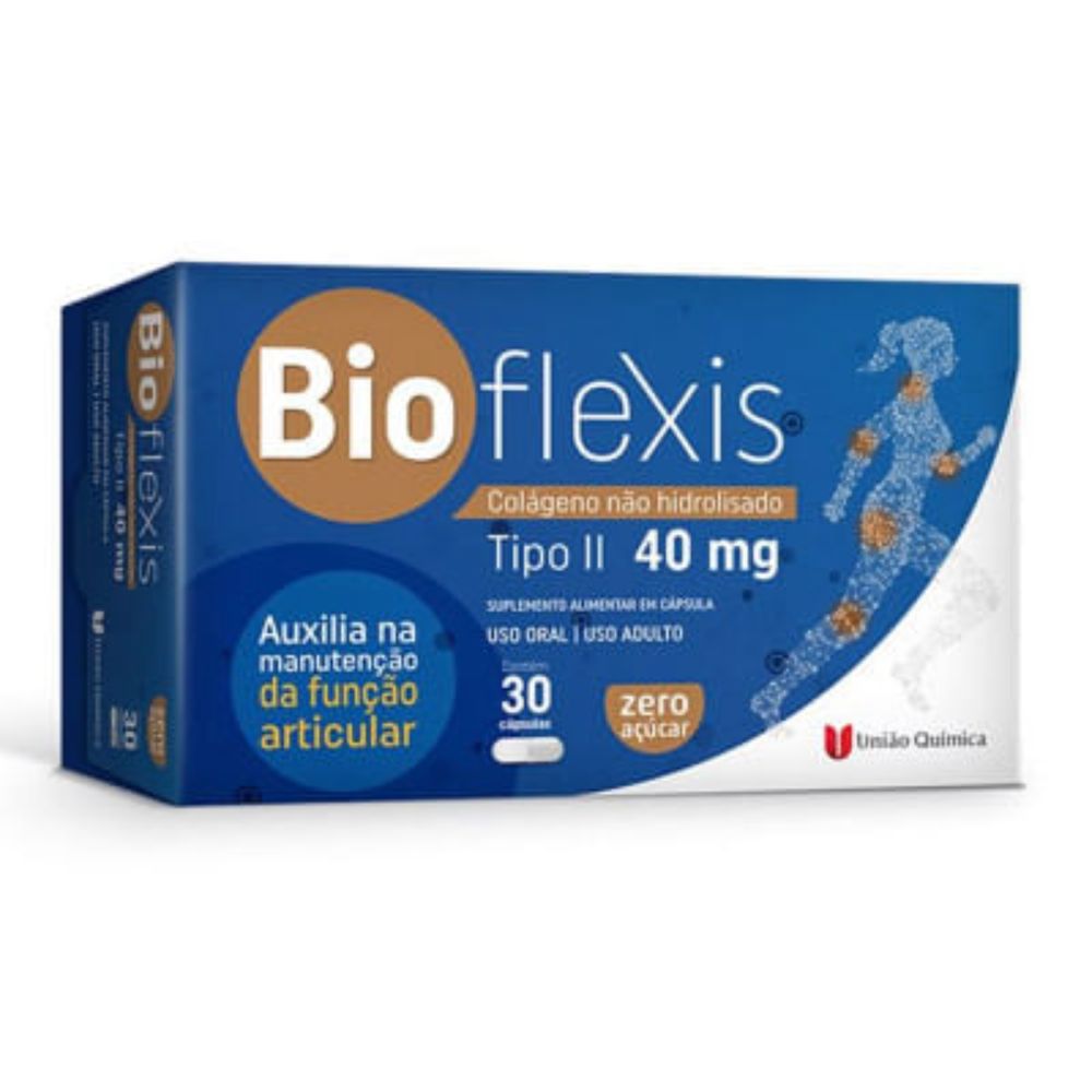 INFORMAÇÕES SOBRE O PRODUTOBioflexis Colágeno Tipo 2 40mg - Suplemento alimentar composto por colágeno não hidrolisado tipo II , indicado para dor e inflamação articular decorrentes de osteoartrite e do uso excessivo das articulações (atletas, corredores); Ajuda a manter a saúde das articulações através da diminuição da inflamação articular e é benéfico para pessoas com dores e doenças articulares ou com maior risco para desenvolvê-las, tais como idosos, obesos, atletas e pessoas que usam muito as articulações.Recomendação de usoCom 1 comprimido ao dia você ajuda a manter a integridade estrutural e as funções dos tecidos conjuntivos e a manter a saúde das articulações. Uso adulto.NÃO CONTÉM AÇÚCAR.NÃO CONTÉM GLÚTEN.