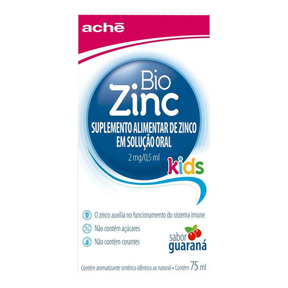 O Biozinc Kids Aché é um suplemento indicado para suprir as carências de zinco para o público infantil. O produto possui componentes que fortalecem as defesas do organismo, além de auxiliar no crescimento saudável das crianças. Leia as instruções de uso na bula. A embalagem contém 75ml.