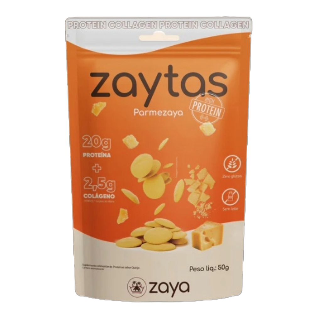 O Biscoito Parmezaya Protein Sem Glúten Zaya vai te acompanhar a qualquer hora do dia, deixando a sua rotina ainda mais saudável e sem abrir mão do sabor!_x005F_x005F_x005F_x000D_  _x005F_x005F_x005F_x000D_ O Biscoito Parmezaya Protein Sem Glúten Zaya é a versão da Zaytas que você conhece, com 20g de proteína e 2,5g de peptídeos bioativos de colágeno hidrolisado por porção, que auxiliam na manutenção da saúde da pele._x005F_x005F_x005F_x000D_  _x005F_x005F_x005F_x000D_ Ingredientes: Proteína de ervilha, farinha de mandioca tipo 1 (Zaya Flour), óleo de coco palmiste, colágeno hidrolisado, sal, extrato de levedura, cúrcuma em pó, condimento sabor queijo, aromatizante e emulsificante goma xantana. NÃO CONTÉM GLÚTEN._x005F_x005F_x005F_x000D_  _x005F_x005F_x005F_x000D_  _x005F_x005F_x005F_x000D_ Sobre a marca: A Zaya surgiu em 2017 com um propósito: fazer a sua inclusão alimentar ter sabor tradicional. Queremos que você não tenha mais que alterar o sabor e a textura dos alimentos em nome da sua saúde. Por isso, somos uma família sem glúten e deliciosa. Nosso primeiro produto foi a farinha Zaya e não à toa ela é a base de todos os outros produtos: uma farinha multiuso de verdade, feita exclusivamente de mandioca. É o item essencial para a sua cozinha! Imagine bolos, biscoitos, brownies, panquecas e crepes, todos saindo exatamente como você se lembra deles? É isso que a Zaya faz por você, pois não tem sabor residual e suas fibras dão aos alimentos a textura perfeita. Esperamos que conheça toda a nossa família e viva a sua melhor experiência sem glúten._x005F_x005F_x005F_x000D_  _x005F_x005F_x005F_x000D_ Sobre a Boomi: A Boomi é  um mercado online com produtos saudáveis e sustentáveis, que fazem bem à saúde e ao planeta. São mais de 3.500 produtos de 150 pequenas marcas para você!_x005F_x005F_x005F_x000D_ Nascemos pequenos, mas com um propósito gigante: conectar pessoas a produtos acessíveis que tragam benefícios para a saúde, para o planeta e para a sociedade. Para isso, buscamos ofertar produtos de pequenos agricultores e pequenas empresas em um mundo cada vez mais veloz e que busca mais produtividade. Vamos sempre buscar levar o melhor para você!_x005F_x005F_x005F_x000D_ Nosso propósito é conectar alimentos saudáveis e produtos naturais e sustentáveis a pessoas preocupadas com a sua saúde e com a saúde do planeta. Com preço justo, comodidade e informações confiáveis._x005F_x005F_x005F_x000D_ Curadoria: Nossos produtos são criteriosamente validados pela nossa curadoria de produtos saudáveis, que busca produtores e empresas que compartilham do nosso alto padrão de qualidade. Da enorme lista de ingredientes banidos à preocupação do bem estar animal, desde o primeiro dia seguimos fieis aos nossos valores, trabalhando com transparência e práticas sustentáveis. Vendemos apenas produtos que admiramos e que nos orgulha.