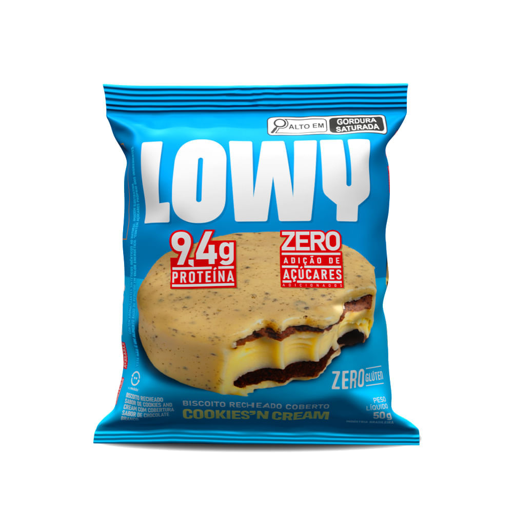 O Biscoito Recheado Cookies and Cream da Lowy é um snack proteico com biscoito crocante de chocolate, recheio cremoso de baunilha e cobertura irresistível de chocolate sabor cookies and cream. Sem adição de açúcares e com 9,4g de proteína por porção, é a escolha perfeita para quem ama sabor e equilíbrio.