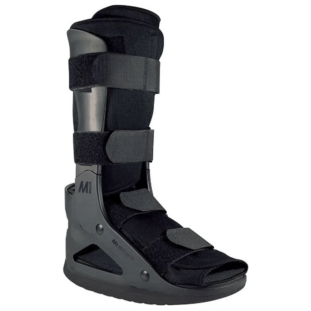 Bilateral e cumpre sua função imobilizadora sem comprometer a autonomia da pessoa lesionada, proporcionando mobilidade e conforto, através de tecnologias em cinco principais componentes: estrutura, solado, palmilha, protetor de calcanhar e revestimento. A estrutura possui hastes anatômicas que encaixam na perna e panturrilha. O componente é produzido em material resistente, sem a utilização de metais, o que possibilita o uso da bota para a realização de exames de raio-x. O solado apresenta uma curvatura com ângulo especialmente desenvolvido para estimular um movimento mais natural do joelho e quadril durante a caminhada. A palmilha proporciona absorção de impacto e distribuição adequada da pressão plantar (forças que se distribuem na planta do pé) para minimizar a sobrecarga nas estruturas do pé, tornozelo e perna. O protetor de calcanhar é uma peça anatômica com a função de aliviar a pressão da região posterior do pé e perna, bem como aumentar a imobilização. O revestimento é transpirável e contém nanopartículas de íons de prata, que neutralizam a proliferação de bactérias no próprio tecido, reduzindo o mau cheiro ocasionado pelo uso prolongado. COMPOSIÇÃO: Estrutura, fechos aderentes, fivelas e rebites: poliamida. Palmilha: borracha natural, borracha sintética, carga mineral, plastificante, agentes de vulcanização e expansão e pigmento. Protetor do calcanhar e solado: EVA (etilvinilacetato). Revestimento: poliéster. Cor: Preta O tamanho adequado é conforme o comprimento do pé: Tamanho M: de 24,5 a 27 cm ALTURA DA BOTA Tamanho M: 33 cm ANVISA: 81284250009