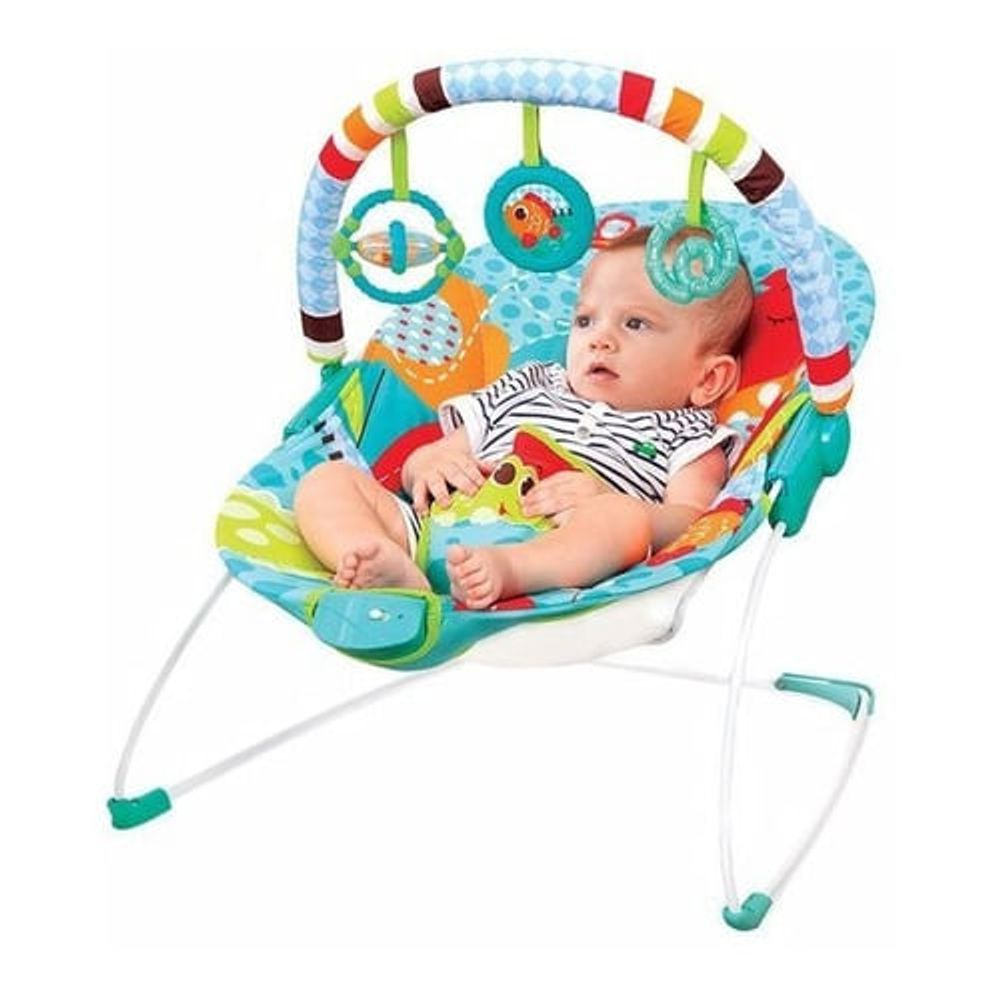 Cadeira de Descanso Carnaval da Mastela é uma cadeira de balanço musical e vibratória para acalmar o bebê, vem com arco de fácil remoção com 3 brinquedos divertidos para distrair o bebê e ajudá-lo em seu desenvolvimento. O assento é desenvolvido para o bebê ser embalado e o tecido pode ser lavado à máquina. O cinto tem 3 pontos para maior segurança dos pequenos e os pés são antiderrapantes para dar maior firmeza.