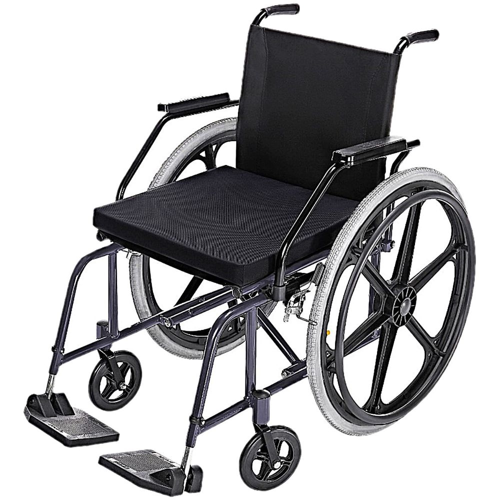 A Cadeira de Rodas Prolife Prática é uma escolha confiável para mobilidade, construída com tubos de aço carbono e assento duplo em nylon com almofada removível.