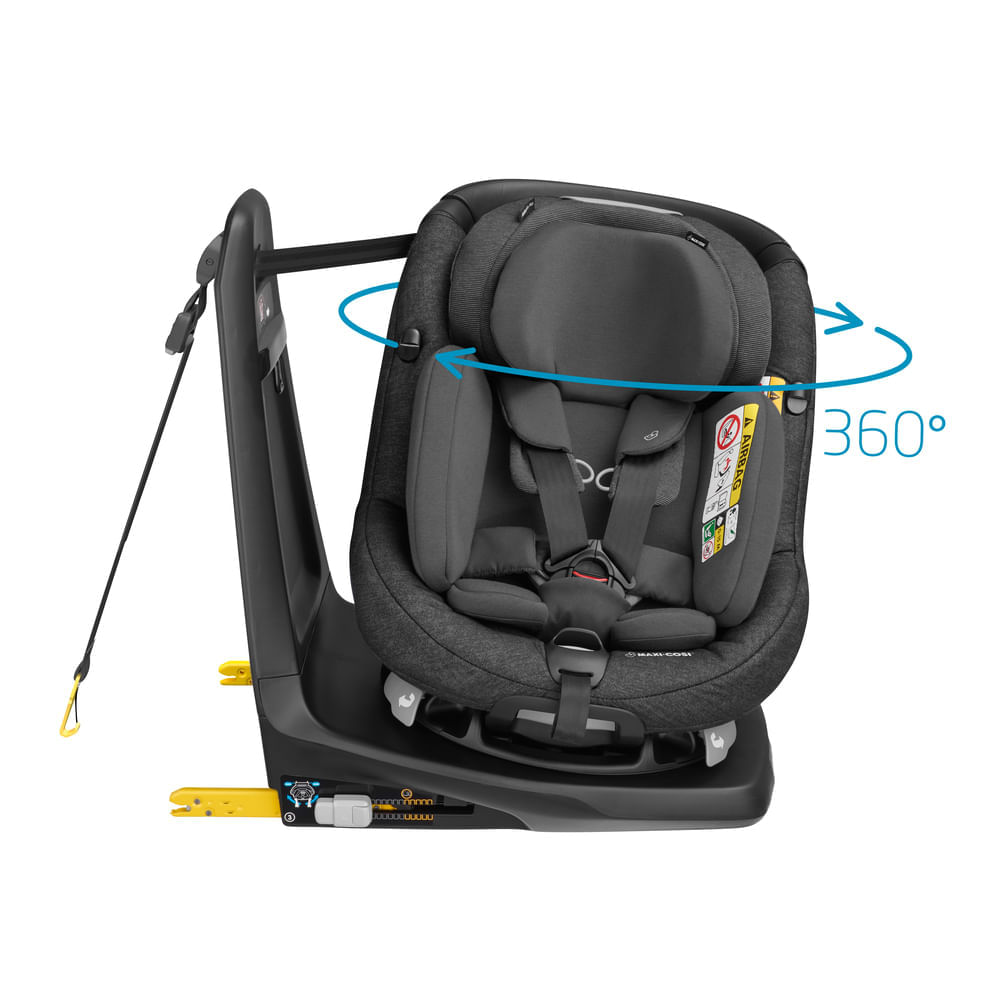 Exclusivo sistema giratório 360º que simplifica muito a rotina de colocar e retirar a criança do veículo, e a transição do Grupo 0+ de costas para o Grupo 1 de frente. Régua de altura que indica o momento certo da mudança.