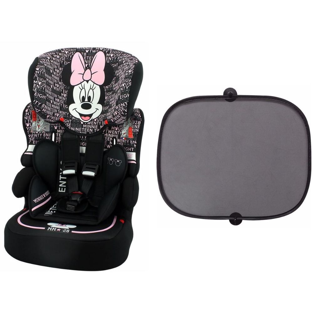 Cadeirinha de Carro Kalle Minnie Mouse Typo Team Tex + Protetor Solar Para Carro Com Ventosas 2 Unid