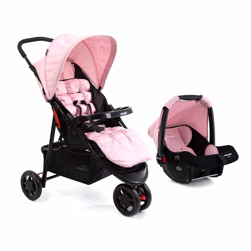 Carrinho com Bebê Conforto Travel System Delta Duo Pro Voyage Rosa Mescla
