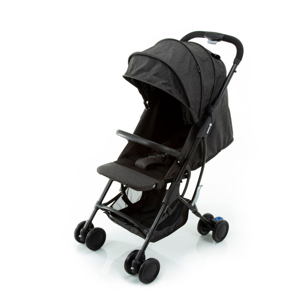 Ampla Capota com visor, rodas dianteiras com travamento opcional e capa removível e lavável.