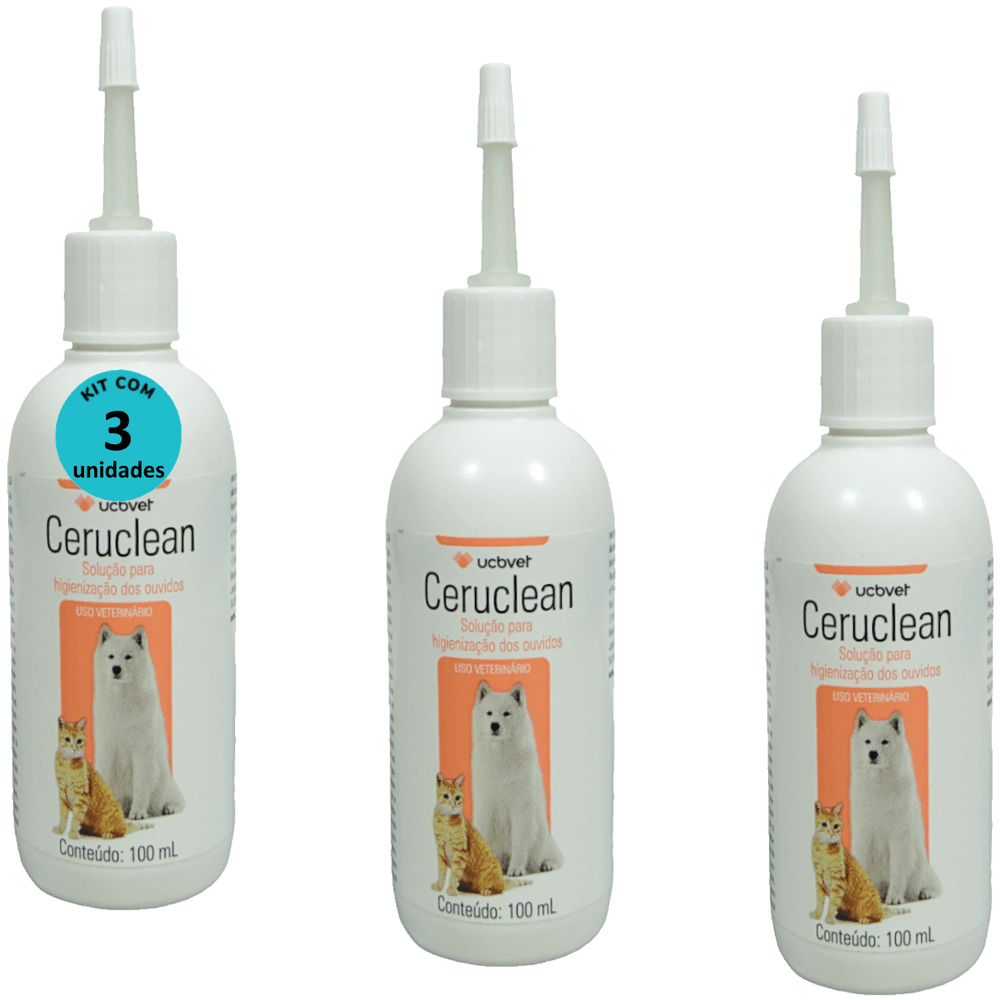 Ceruclean 100ml Solução Para Higienização dos Ouvidos Para Cães e Gatos Kit Com 3