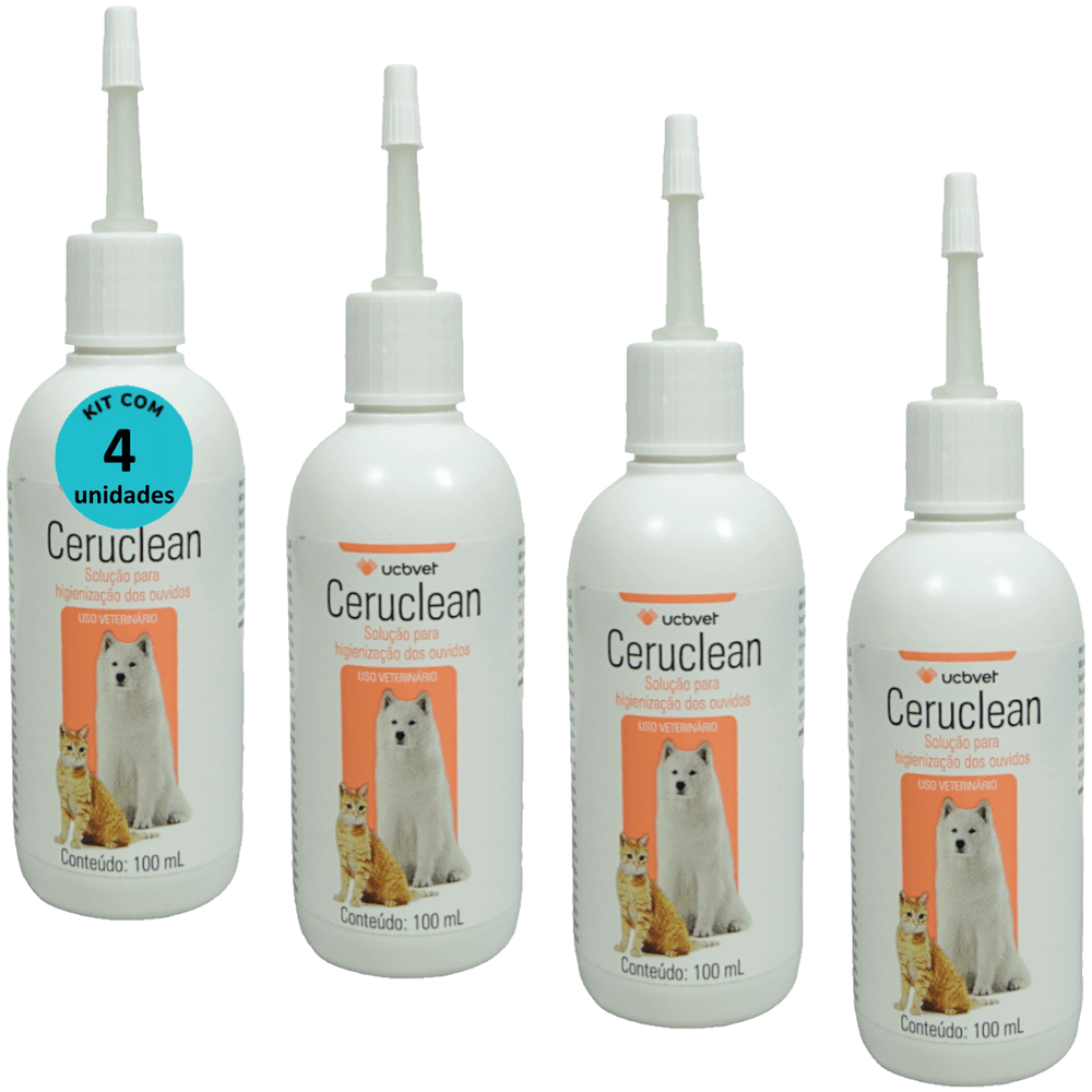 Ceruclean 100ml Solução Para Higienização dos Ouvidos Para Cães e Gatos Kit Com 4