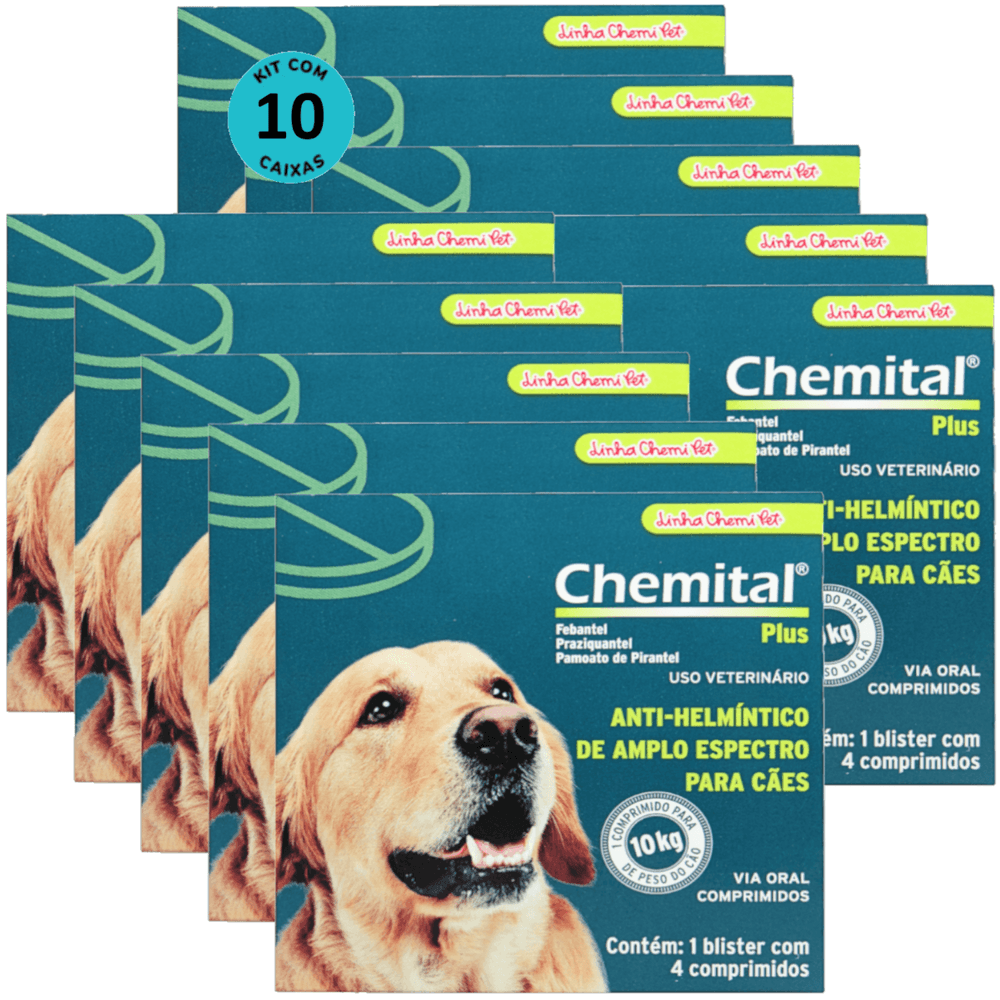 Chemital Plus Com 4 Comprimidos Chemitec Vermífugo Para Cães Kit Com 10 Cx
