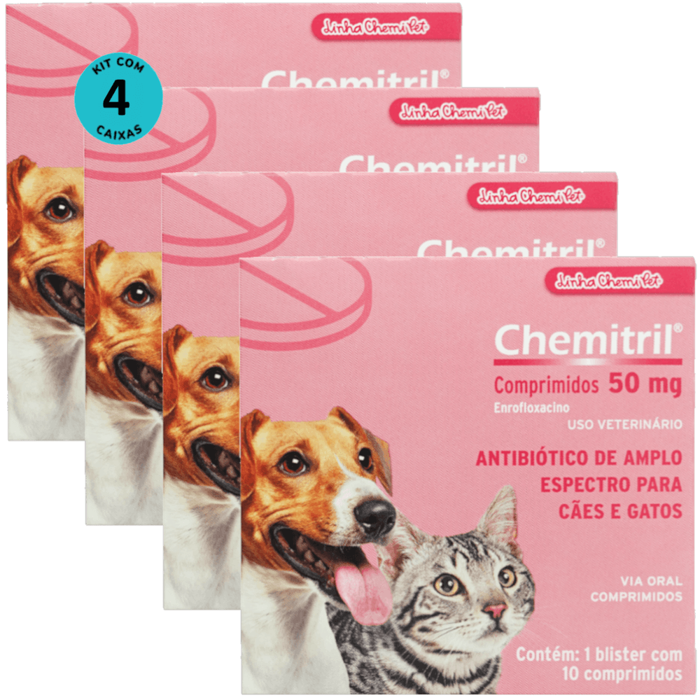 Chemitril 50mg Com 10 Comprimidos Para Cães e Gatos Chemitec Kit Com 4