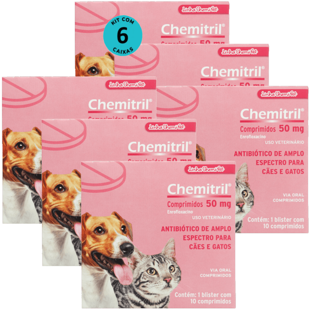 Chemitril 50mg Com 10 Comprimidos Para Cães e Gatos Chemitec Kit Com 6