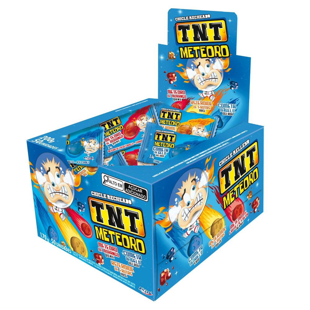 Chicletes recheado sabor sortido de Tutti-frutti,morango e menta com 50 unidades de 170g - TNT Meteoro