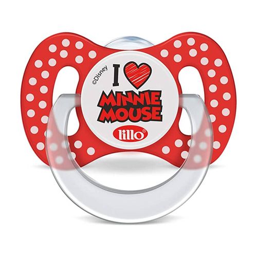 A Chupeta Funny Disney Lillo apresenta uma decoração moderna da Minnie e possui formato de escudo com bordas arredondadas e grandes canais de ventilação. Seu bico é em silicone macio e flexível e é livre de Bisfenol-A.