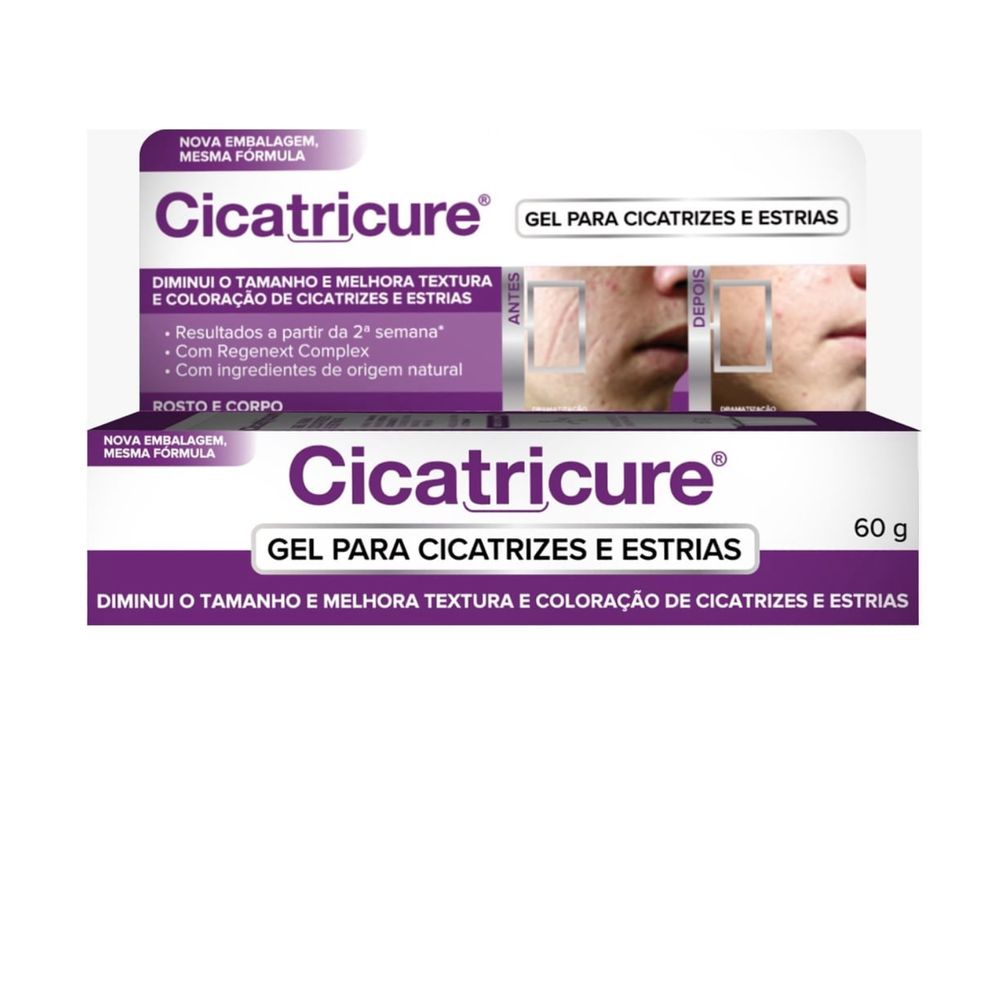 INFORMAÇÕES SOBRE O PRODUTOGel Cicatricure para cicatrizes e estrias 60g Melhora a aparência da pele como cicatrizes. Se usa com constância, se nota! Tecnologia dermatológica ao seu alcance. A Alta efetividade de Cicatricure Gel para suavizar os tipos de cicatrizes da sua pele, acontece através dos ingredientes da sua fórmula exclusiva. A ação dos ingredientes do Cicatricure Gel resulta na melhora gradativa da aparência da pele com cicatrizes, estimulando a regeneração da pele, atenuando a cor e textura das cicatrizes. Sua fórmula foi desenvolvida e testada clinicamente especialmente para hidratar e melhorar a aparência da pele com cicatriz. A cicatrização é um processo que ocorre em nossa pele para regenerar os tecidos da derme e epiderme que sofreram uma lesão. é um processo natural do nosso organismo, que busca reparar os danos sofridos na pele, podendo se manifestar de formas diferentes, dependendo da intensidade do ferimento. Cicatricure Gel melhora visivelmente as cicatrizes antigas e recentes. A fórmula clinicamente comprovada de Cicatricure Gel promove uma melhora na textura e elasticidade do tecido, hidratando e melhorando o aspecto e a coloração da pele com cicatriz. Cicatricure Gel é indicado para os diversos tipos de cicatriz, causadas por: Cirugias: Geralmente, o procedimento consiste em uma incisão na pele e a abertura de seus tecidos. Esta ruptura é capaz de deixar cicatrizes incômodas na área envolvida. Durante o processo de cura, dependendo dos cuidados dedicados e de acordo com o seu tipo de pele, esta lesão pode levar a formação de uma quelóide. Acidentes: Golpes, quedas, queimaduras, arranhões, cortes, entre outros, são causas de marcas na pele. Quando ocorre um acidente, a vítima deve higienizar e tratar a ferida de maneira cuidadosa, a fim de evitar infecções e assim obter um processo de cicatrização bem-sucedido. Queimaduras: Lesões ocasionadas na pele quando em contato com alto grau de calor. Estrias: A estria é o resultado da ruptura das fibras elásticas que compõem a estrutura da pele. Muitas vezes ocasionadas por aumento de massa corporal, como gravidez, enfermidades e ganho de peso em geral. Quando a pele é esticada além de sua forma natural, surgem linhas avermelhadas na região afetada. Estas ranhuras eventualmente assumirão uma coloração esbranquiçada, e futuramente apresentarão a aparência de cicatriz. Acne:Manifestações como espinhas são decorrente de uma serie de fatores como: a inflamação das glândulas polissebáceas, queratinização folicular, aumento da produção de sebo, presença de bactérias etc. Com isso, a obstrução de seus poros pode apresentar protuberância vermelha, inflamada e infeccionada. Durante a adolescência é mais frequente que se sofra com acne, devido a maior alteração hormonal. As consequências da falta de cuidado ou métodos inadequados, podem refletir em marcas, manchas e cicatrizes na pele.