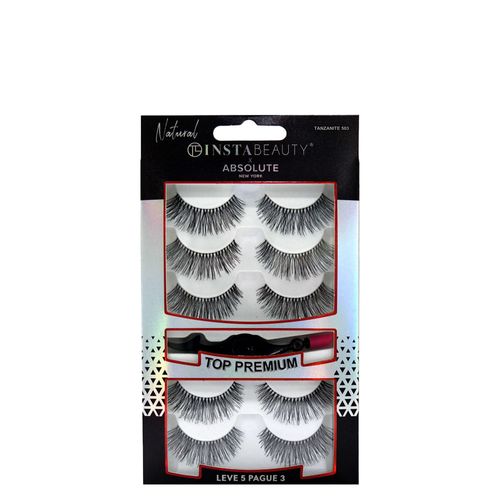 Cílios Postiços Longo Natural Absolute New York Pack Tanjanite 503 Preto 5 Pares