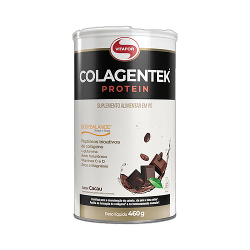 O Colagentek Protein Colágeno Hidrolisado Cacau Vitafor é um suplemento à base de colágeno hidrolisado com a tecnologia BODYBALANCE®, adicionada aos ingredientes: glutamina, ácido hialurônico, vitaminas C e D, magnésio e zinco._x005F_x005F_x005F_x000D_ _x005F_x005F_x005F_x000D_A combinação inteligente de vitaminas e minerais presentes no Colagentek Protein Colágeno Hidrolisado Cacau Vitafor potencializa a construção e manutenção dos músculos e ossos proporcionada pelas proteínas. _x005F_x005F_x005F_x000D_ _x005F_x005F_x005F_x000D_Ingredientes: Colágeno hidrolisado, L-glutamina, cacau em pó, bisglicinato de magnésio (magnésio), hialuronato de sódio obtido pela fermentação de Streptococcus zoopidemicus, ácido ascórbico (vitamina C), bisglicinato de zinco (zinco), colecalciferol (vitamina D3), aroma idêntico ao natural, antiumectante dióxido de silício, espessante goma xantana, edulcorantes glicosídeos de esteviol de stevia rebaudiana bertoni (estévia) e taumatina. NÃO CONTÉM GLÚTEN._x005F_x005F_x005F_x000D_ _x005F_x005F_x005F_x000D_ _x005F_x005F_x005F_x000D_Sobre a marca: A Vitafor nasceu há 14 anos pra fazer você viver bem. Bem com seu corpo, seus hábitos e sua mente. Da infância à melhor idade. Por isso, tem compromisso máximo em desenvolver os mais variados suplementos nutricionais, sempre com alta qualidade, eficácia e inovação._x005F_x005F_x005F_x000D_Não é à toa que a Vitafor é a marca mais premiada e recomendada pelos profissionais de saúde do Brasil. Além de qualidade e inovação, a Vitafor oferece todo o suporte necessário aos profissionais que reconhecem a qualidade dos produtos Vitafor e os recomendam para milhões de consumidores._x005F_x005F_x005F_x000D_Já são mais de 200 produtos com soluções nutricionais que atendem diferentes necessidades, de quem procura bem-estar aos que procuram alta performance. Além de estruturas físicas modernas, a Vitafor conta com um time técnico altamente qualificado, formado por profissionais da saúde renomados, garantindo o que há de melhor para nossos clientes, parceiros e consumidores._x005F_x005F_x005F_x000D_ _x005F_x005F_x005F_x000D_Sobre a Boomi: A Boomi é  um mercado online com produtos saudáveis e sustentáveis, que fazem bem à saúde e ao planeta. São mais de 3.500 produtos de 150 pequenas marcas para você!Nascemos pequenos, mas com um propósito gigante: conectar pessoas a produtos acessíveis que tragam benefícios para a saúde, para o planeta e para a sociedade. Para isso, buscamos ofertar produtos de pequenos agricultores e pequenas empresas em um mundo cada vez mais veloz e que busca mais produtividade. Vamos sempre buscar levar o melhor para você!Nosso propósito é conectar alimentos saudáveis e produtos naturais e sustentáveis a pessoas preocupadas com a sua saúde e com a saúde do planeta. Com preço justo, comodidade e informações confiáveis.Curadoria: Nossos produtos são criteriosamente validados pela nossa curadoria de produtos saudáveis, que busca produtores e empresas que compartilham do nosso alto padrão de qualidade. Da enorme lista de ingredientes banidos à preocupação do bem estar animal, desde o primeiro dia seguimos fieis aos nossos valores, trabalhando com transparência e práticas sustentáveis. Vendemos apenas produtos que admiramos e que nos orgulha.