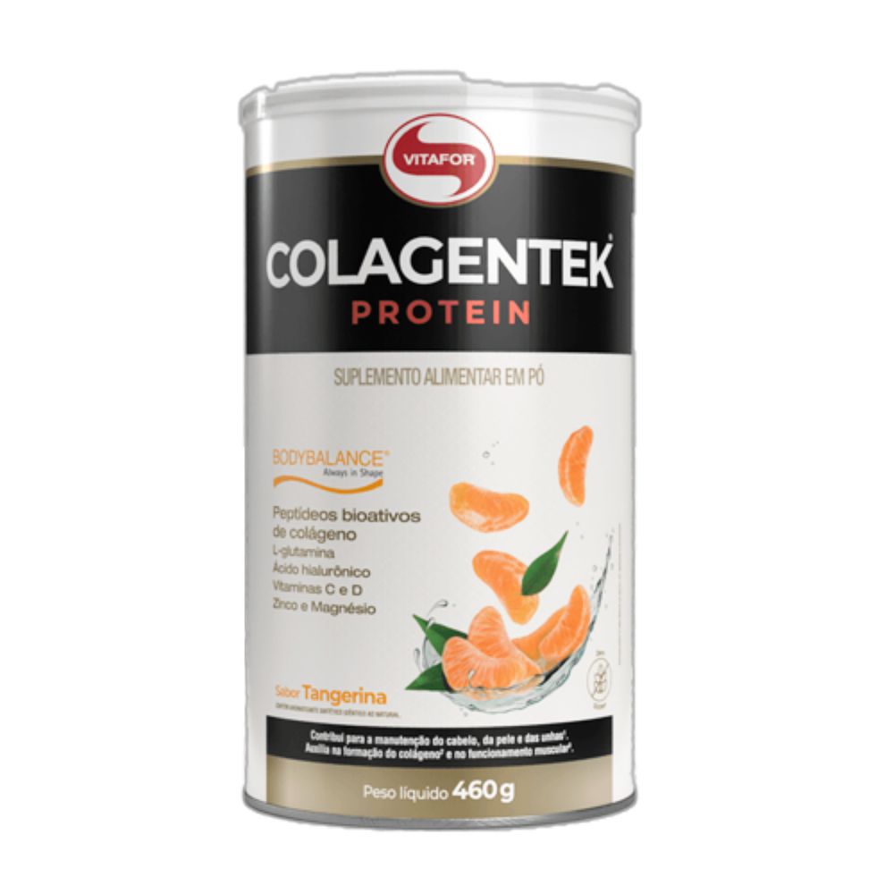 O Colagentek Protein Colágeno Hidrolisado Tangerina Vitafor é um suplemento à base de colágeno hidrolisado com a tecnologia BODYBALANCE®, adicionada aos ingredientes: glutamina, ácido hialurônico, vitaminas C e D, magnésio e zinco. A combinação inteligente de vitaminas e minerais presentes no Colagentek Protein Colágeno Hidrolisado Tangerina Vitafor potencializa a construção e manutenção dos músculos e ossos proporcionada pelas proteínas.  Ingredientes: Colágeno hidrolisado, L-glutamina, bisglicinato de magnésio (magnésio), hialuronato de sódio obtido pela fermentação de Streptococcus zoopidemicus, ácido ascórbico (vitamina C), bisglicinato de zinco (zinco), colecalciferol (vitamina D3), aroma idêntico ao natural, acidulante ácido cítrico, corante extrato de urucum (norbixina), antiumectante dióxido de silício, espessante goma xantana, edulcorantes glicosídeos de esteviol de stevia rebaudiana bertoni (estévia) e taumatina. NÃO CONTÉM GLÚTEN. Sobre a marca: A Vitafor nasceu há 14 anos pra fazer você viver bem. Bem com seu corpo, seus hábitos e sua mente. Da infância à melhor idade. Por isso, tem compromisso máximo em desenvolver os mais variados suplementos nutricionais, sempre com alta qualidade, eficácia e inovação. Não é à toa que a Vitafor é a marca mais premiada e recomendada pelos profissionais de saúde do Brasil. Além de qualidade e inovação, a Vitafor oferece todo o suporte necessário aos profissionais que reconhecem a qualidade dos produtos Vitafor e os recomendam para milhões de consumidores. Já são mais de 200 produtos com soluções nutricionais que atendem diferentes necessidades, de quem procura bem-estar aos que procuram alta performance. Além de estruturas físicas modernas, a Vitafor conta com um time técnico altamente qualificado, formado por profissionais da saúde renomados, garantindo o que há de melhor para nossos clientes, parceiros e consumidores. Sobre a Boomi: A Boomi é  um mercado online com produtos saudáveis e sustentáveis, que fazem bem à saúde e ao planeta. São mais de 3.500 produtos de 150 pequenas marcas para você!Nascemos pequenos, mas com um propósito gigante: conectar pessoas a produtos acessíveis que tragam benefícios para a saúde, para o planeta e para a sociedade. Para isso, buscamos ofertar produtos de pequenos agricultores e pequenas empresas em um mundo cada vez mais veloz e que busca mais produtividade. Vamos sempre buscar levar o melhor para você!Nosso propósito é conectar alimentos saudáveis e produtos naturais e sustentáveis a pessoas preocupadas com a sua saúde e com a saúde do planeta. Com preço justo, comodidade e informações confiáveis.Curadoria: Nossos produtos são criteriosamente validados pela nossa curadoria de produtos saudáveis, que busca produtores e empresas que compartilham do nosso alto padrão de qualidade. Da enorme lista de ingredientes banidos à preocupação do bem estar animal, desde o primeiro dia seguimos fieis aos nossos valores, trabalhando com transparência e práticas sustentáveis. Vendemos apenas produtos que admiramos e que nos orgulha.