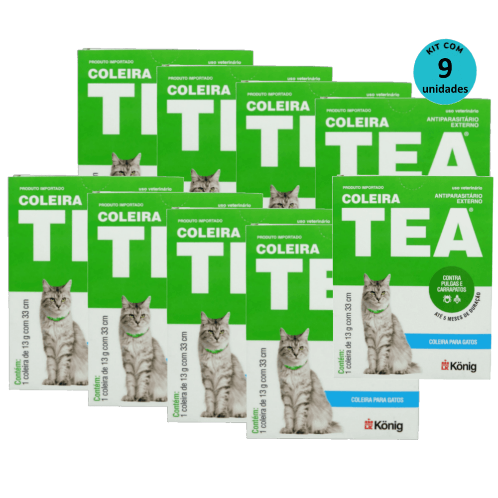 Coleira Tea Contra Pulgas E Carrapatos P/ Gatos König 13g C/ 33cm Kit C/ 9 Unid.